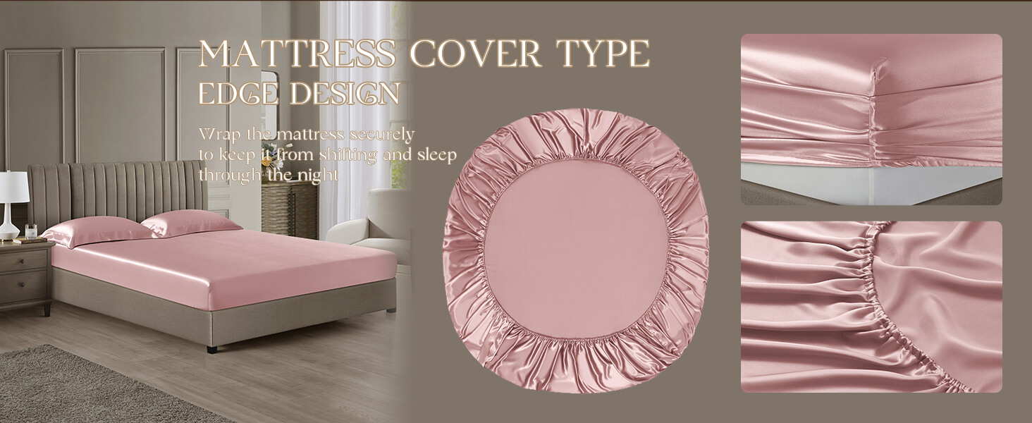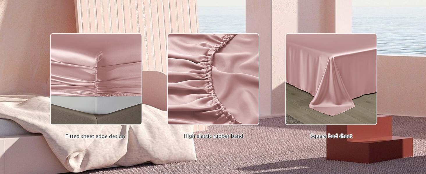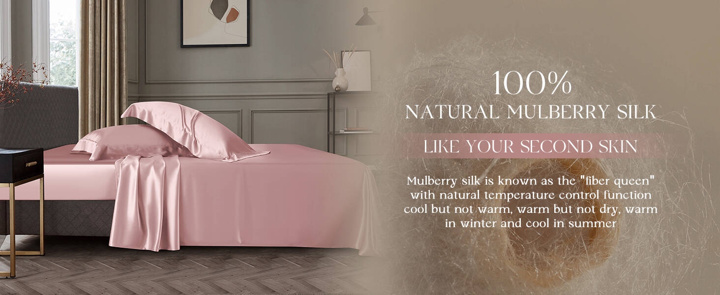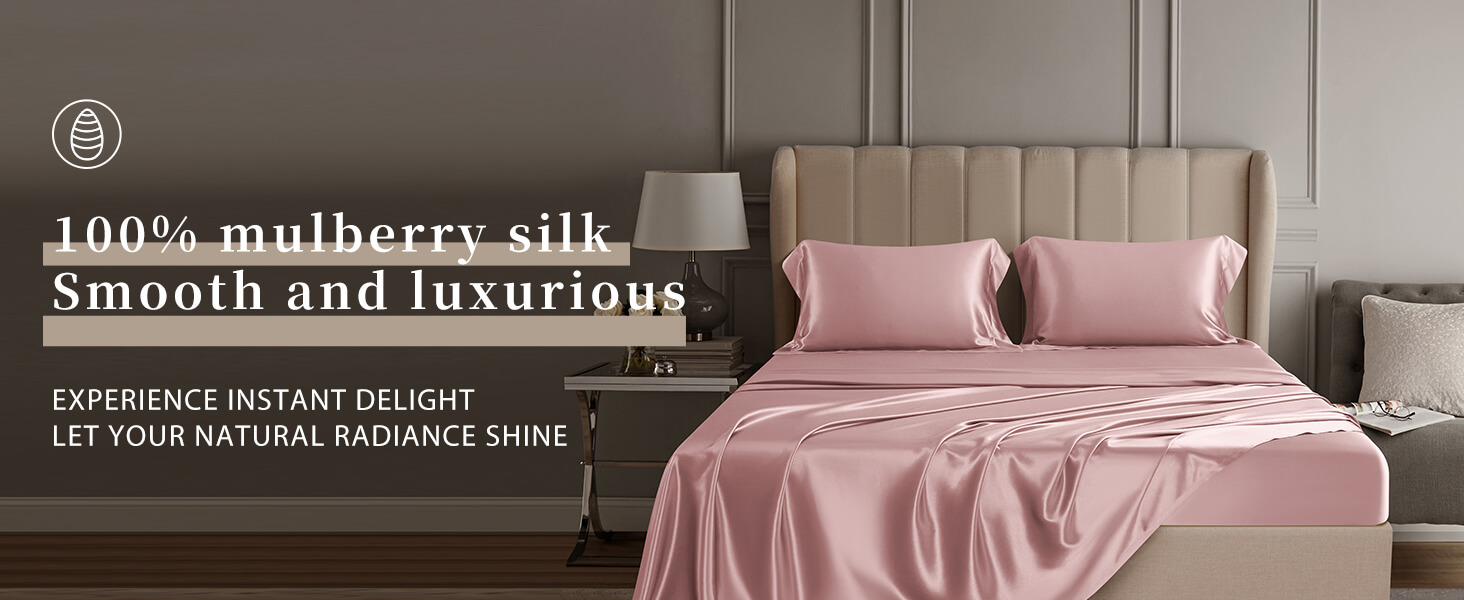DISANGNI 22 Momme 100% Mulberry Silk Bedding Set - 4-Piece Luxury (2 Pillowcases, 1 Fitted Sheet, 1 Flat Sheet) - 6A Grade Natural Silk (Pink, Queen)
