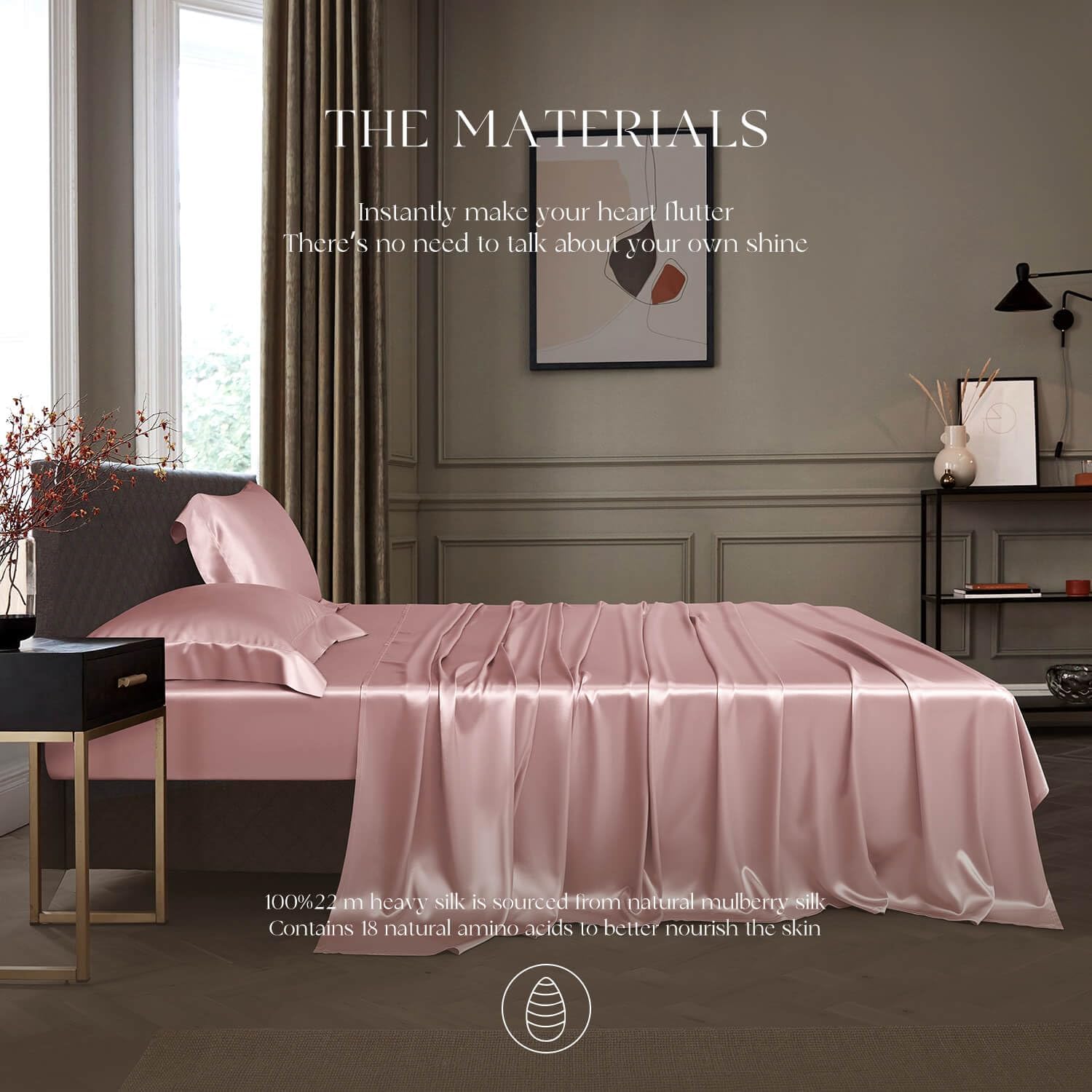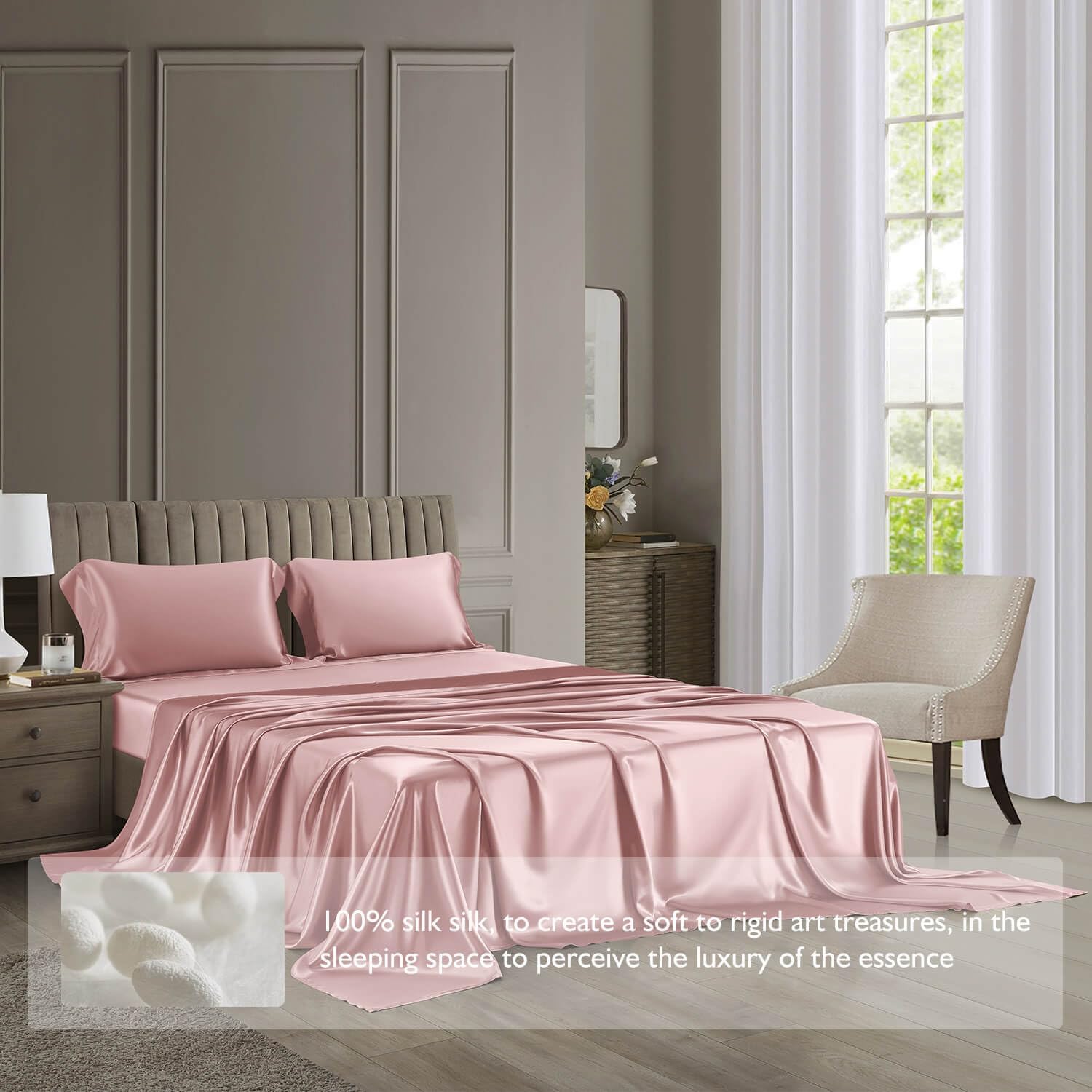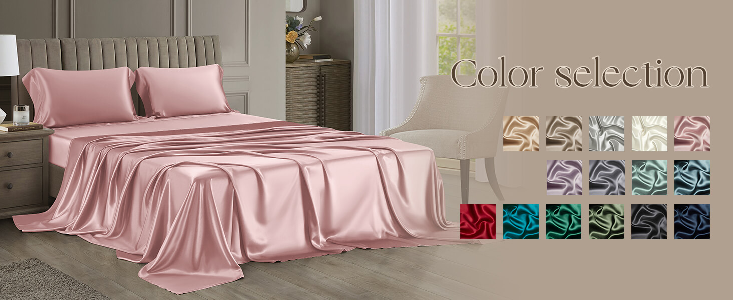 DISANGNI 22 Momme 100% Mulberry Silk Bedding Set - 4-Piece Luxury (2 Pillowcases, 1 Fitted Sheet, 1 Flat Sheet) - 6A Grade Natural Silk (Pink, Queen)