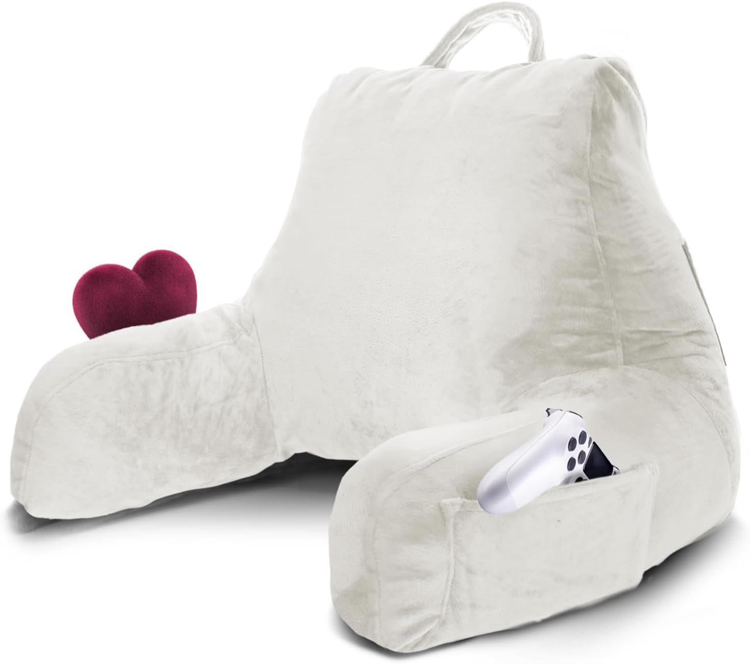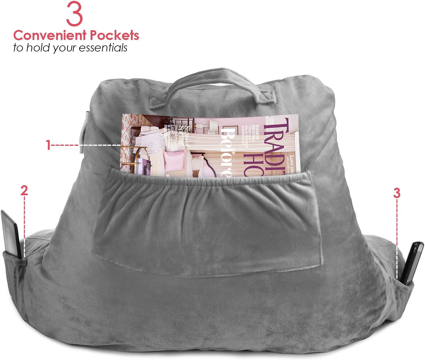 Nestl Reading Pillow with Shredded Memory Foam, Designed for Sitting Up in Bed and Couch, Back and Arms Adjustable Support for Adult & Teens Backrest Pillows for Reading, with Washable Cover Dark Grey