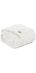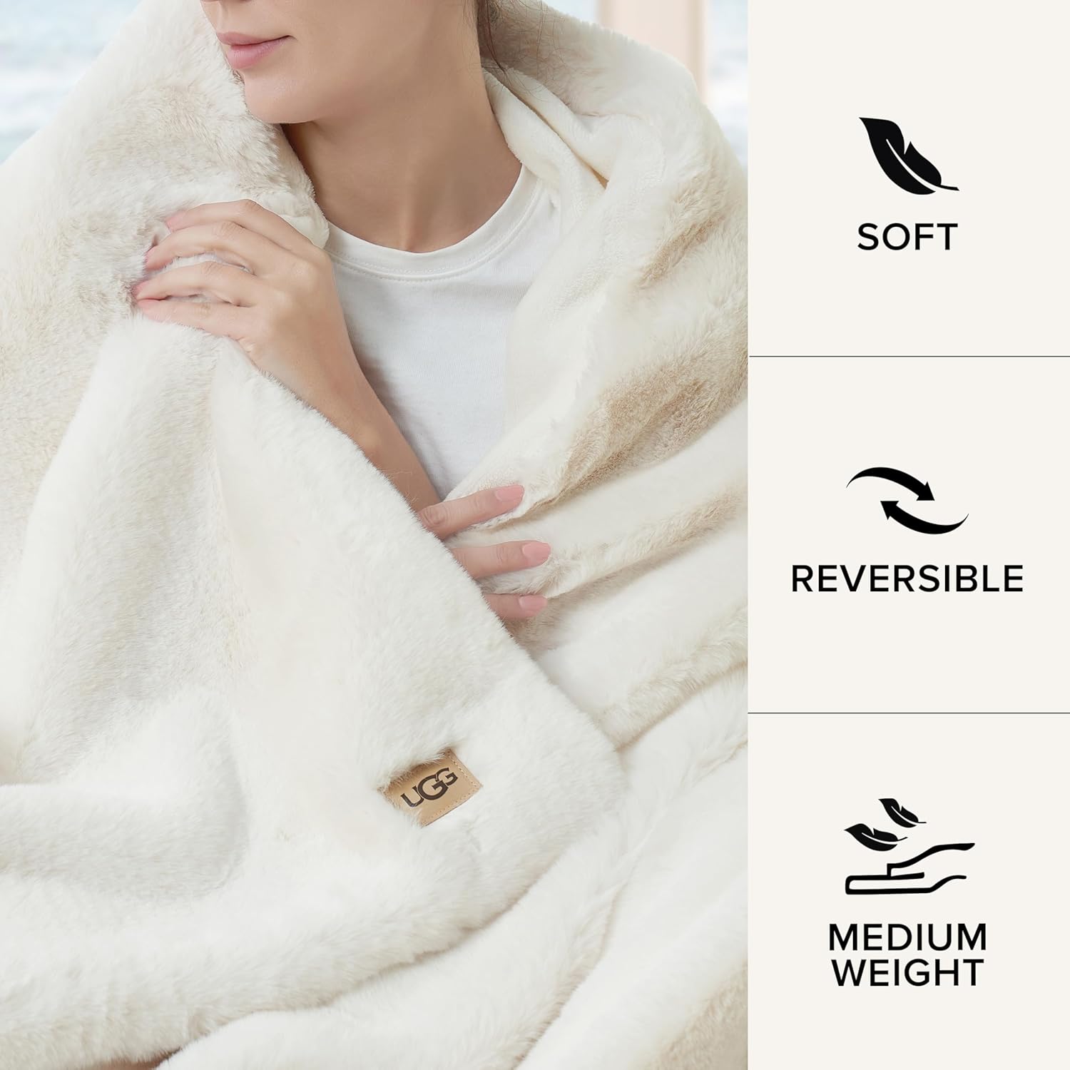 UGG Euphoria Plush Faux Fur Throw Blanket Medium Weight Reversible Luxury Soft Throw for Couch Bed or Chair Hypoallergenic Machine Washable Home Decor Fluffy Blanket, 50-inch x 70-inch, White Snow